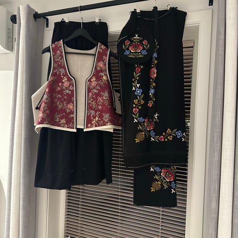 Selger en delvis ferdigmontert jelsa rogalandsbunad. Det meste er sydd på, men gjenstår å tilpasse bunaden etter ønsket passefom.☺️