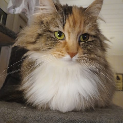Med tungt hjerte ser vi etter et nytt, trygt og kjærlig hjem til vår elskede katt På grunn av endrede omstendigheter har vi dessverre ikke mulighet til å gi henne den oppfølgingen hun fortjener, og ønsker derfor at hun skal komme til noen som kan ta godt vare på henne.