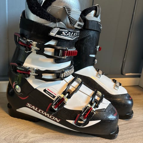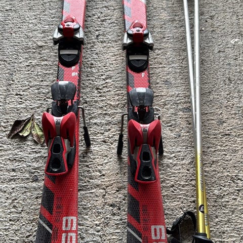 Pent brukt alpinutstyr med ski 144cm-hjelm- sko størrelse 38,5- staver 115 cm og briller.