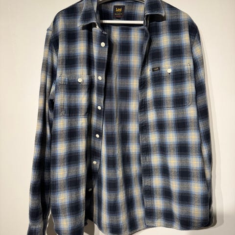 Lee Regular Fit skjorte i blått/rødt mønster, størrelse M.