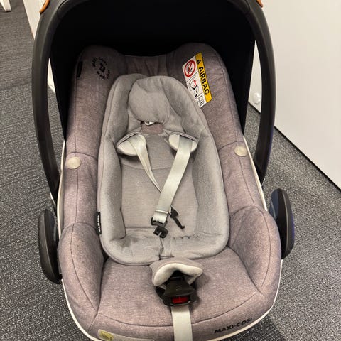 Selger en Maxi-Cosi Pebbel Plus i god stand. Dette er en trygg og komfortabel baby bilstol som passer fra nyfødt og opp til ca. 12 måneder (0–13 kg). Modellen er kjent for høy sikkerhet, enkel bruk og god støtte for de minste.