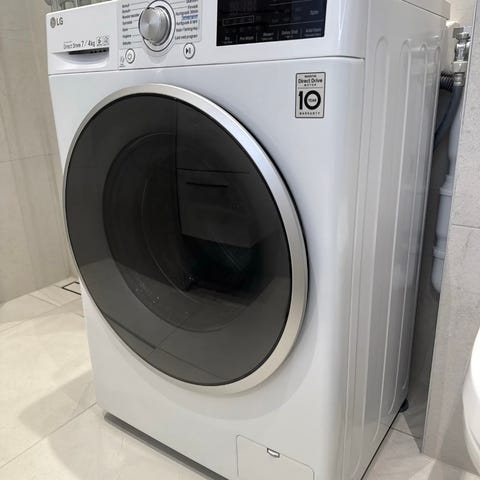 Effektiv og plassbesparende vaskemaskin med tørkefunksjon fra LG – perfekt for mindre husholdninger eller hjem med behov for kombinert vask og tørk i én maskin.