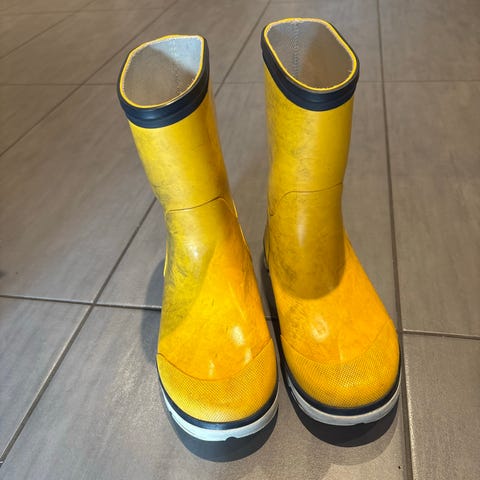 Swsher Barne gummistøvler i størrelse 34. Støvlene er unisex og har en brun farge. De er laget av vanntett materiale med en isolert innside for å holde føttene varme og tørre.