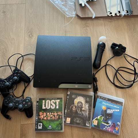Selger en komplett og fungerende PlayStation 3 Fat-pakke (tidlig "tjukk" modell med chrome-stripe). Perfekt for retro-spilling og klassikere!