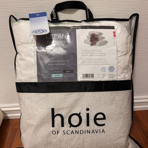 Høie fiberdyne 80x100 og Mascot fiberpute 40x40 med dyne-og putetrekk selges