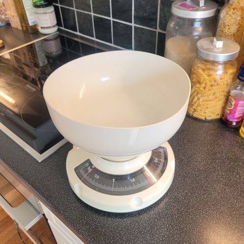 Vintage og dekorativ kjøkkenvekt selges, pakker godt ved sending.