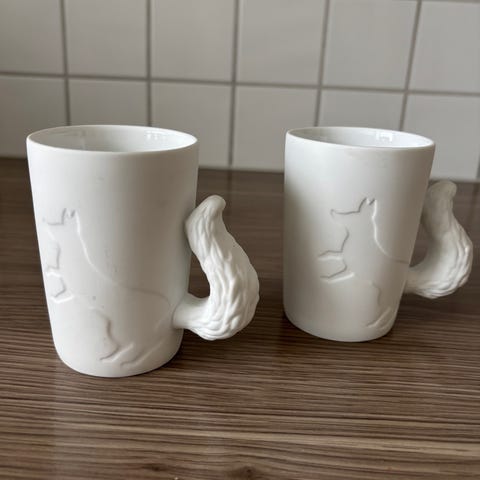Jeg selger også flere krus i samme serie; katt, pinnsvin, rev, sau og elg. Kan selges samlet.
