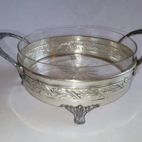 Vintage jardiniere/ blomsterskål i messing, jugendstil