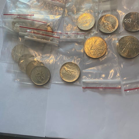 Komplett, kun oppbevart i eske. 12 stk. sølvmynter.