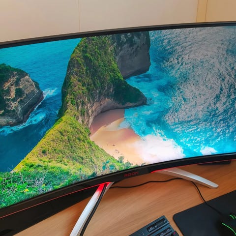 Kurved skjerm veldig godt brukt hatt den i mange år den har begynt å bli dårlig men går framdeles ann å spille på den