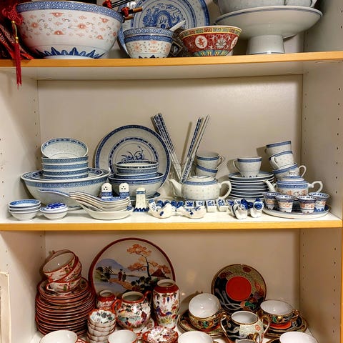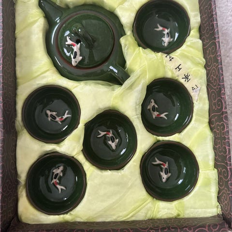 Lite kinesisk teservise i en fin oppbevaringseske. Brukt til barn her i huset.