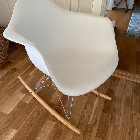 Fin gyngestol i hvit med flotte detaljer i ryggen. Selges grunnet flytting. Kjøpte den tidligere i sommer på finn:)