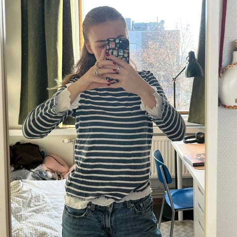 Selger denne søte genseren fra Gina T! Selges da den bare har blitt liggene i skapet.. Den passer perfekt til sommer dager etter et bad. Eller hvis du er i et rush og trenger noe «pent» å ha på deg! Passer til det meste. Det er strl M, men jeg bruker S. Den har ingen bruksmerker og fremstår som pent brukt. Pris kan diskuteres, men skam budbesvares ikke!:):)