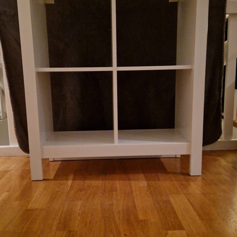 Praktisk oppbevaringshylle som kan benyttes liggende eller stående, alt etter behov.