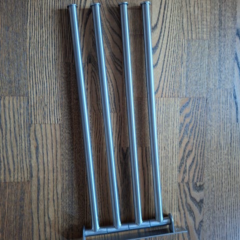 Håndkleholder i krommet metall med flere stenger for oppheng av håndklær. Designet for å holde flere håndklær separat og organisert. Passer til baderom og vaskerom.antydninger til noe rust flekk nederst på foten. Se bilde