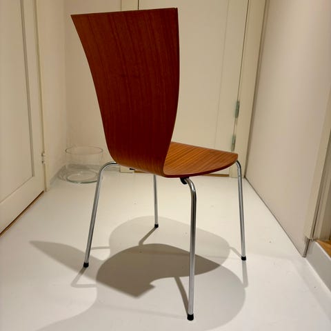 Flott stol med eldre utseende. Kjøpt på vestkanttorget for ca et år siden. Selger sa den var laget i Oslo. Stolpene under trenger mulignens litt trelim:)