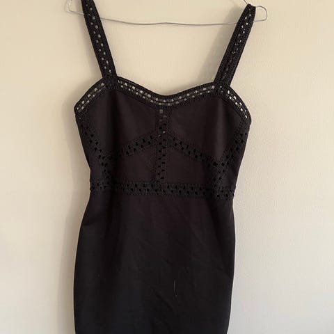 H&M Hverdagskjole i størrelse M laget av chiffon materiale. Kjolen er svart med et mønster og har en feminin passform. Egnet for hverdagsbruk.