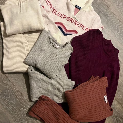 En klesspakke med div ull fra 110/116 til 122/128 mest 116 se bilder.