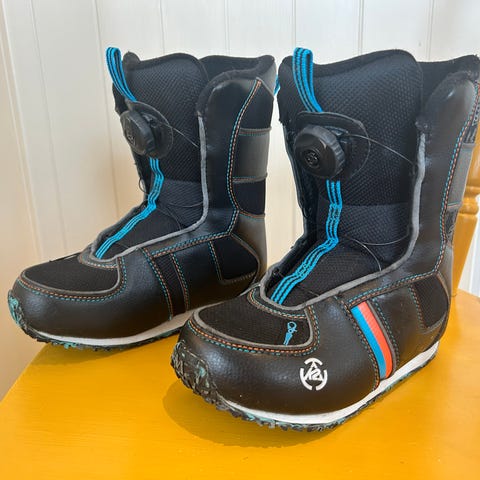 Snowboardsko fra K2 med boa system. Pent brukt. Har det K2 kaller Grows-a-long innersåle. Det er inntil 3 såler som kan fjernes for å justere opp størrelse.