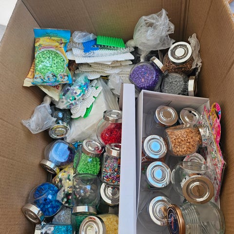 Pent brukt perlesett fra Clas Ohlson. 8 forskjellige farger, store perler, 1 perlebrett. Ny pris 169 kr.