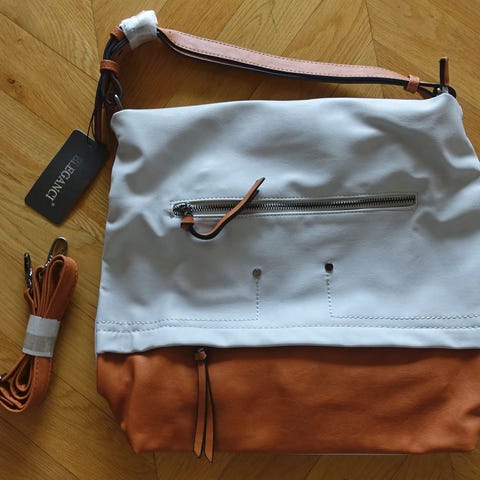 Dame veske marine blå med hvit, grå og rød , merke Carine