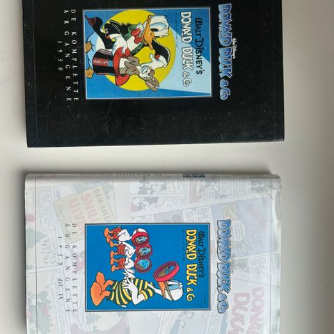 Boka har lite slitasje, noe slitasje til høyre oppe for Donald på forsiden, og på baksiden er det et par flekker.