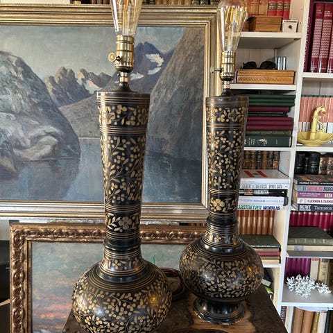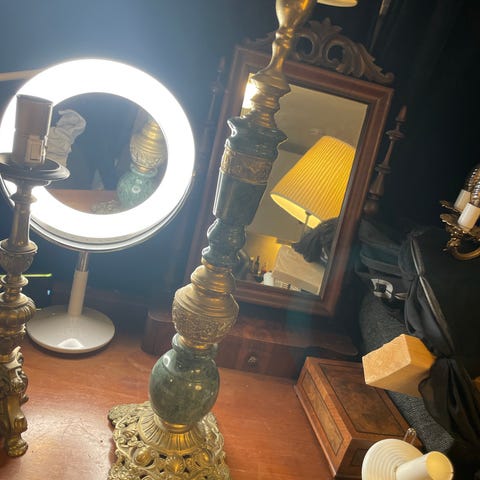 En prektig, vakker kandelaber med prismer 51 cm fra bunn til øverste lysholder. Tung og massiv