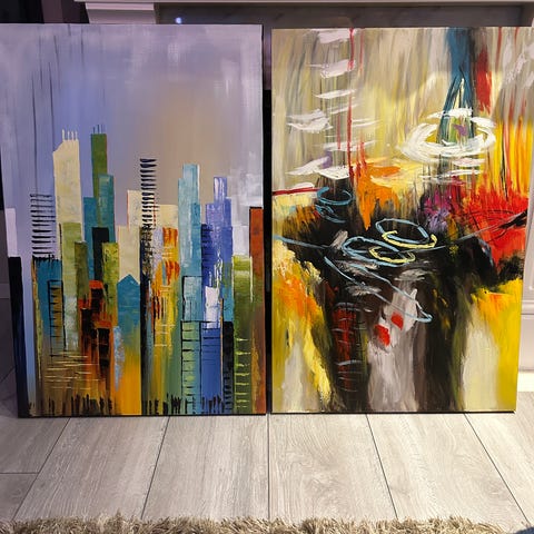 Abstrakt maleri blåtoner / bildet 80x80 cm