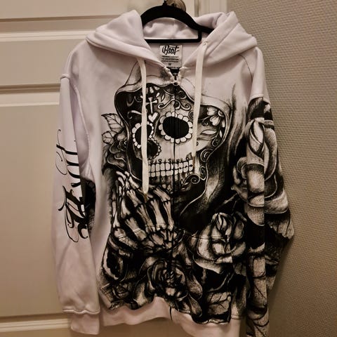 Selger mine jefree star can’t relate tshorter - både original og begge Halloween utgavene. (Den rosa/orginalen er i XXL), den blå er XL og den oransje er L. Genseren er XL, den grønne «hi how are yaa» er XL