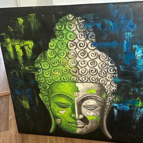 Stort Buddha-maleri på lerret - blandet teknikk.