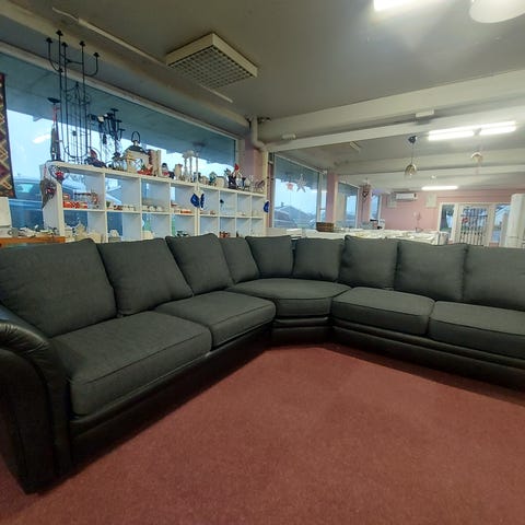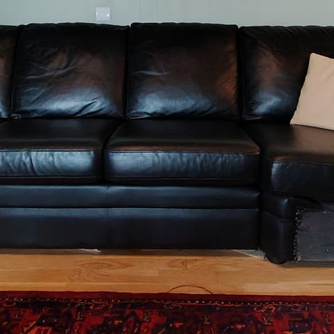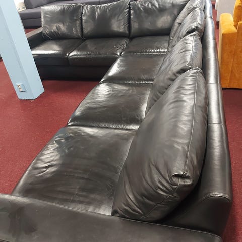 Svart hjørnesofa i skinn selges grunnet flytting.