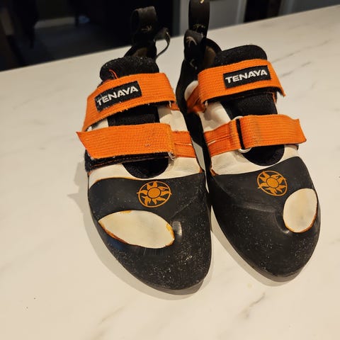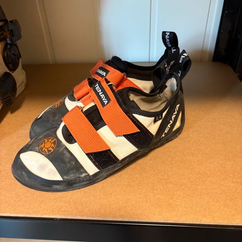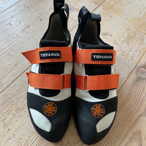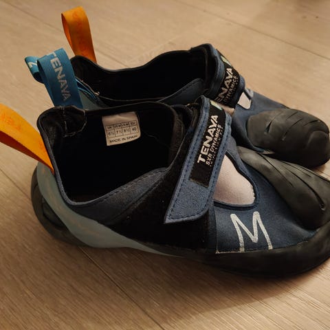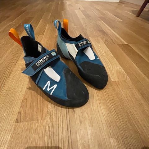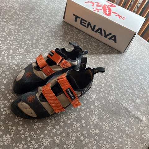 Selger disse Tenaya Masai-klatreskoene da de ikke blir brukt. Kun testet dem ett par ganger, ingen synlige bruksmerker.