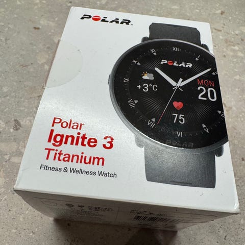 Helt ny Polar Ignite 2 i uåpnet eske. Fikk denne på reklamasjon, men hadde imellomtiden kjøpt meg en annen pulsklokke.