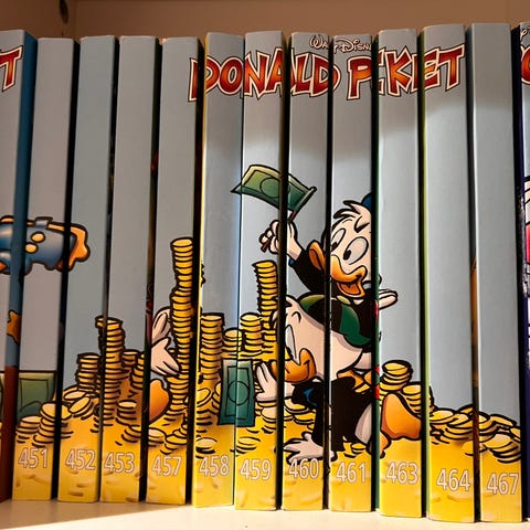 Selger pockets på bildet samlet. Noen få er ikke Donald Pocket, men Skrue, Fantoma,...