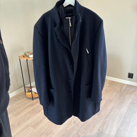 Stilren og sofistikert frakk i ullblanding. Kommer med skjulte knapper i front, med en avtakbar indre vest med glidelås og lett vattert design. Frakken har også polerte to midjelommer, en innerlomme med glidelås, knapper ved mansjetter og en splitt bak for bedre passform og bevegelse.