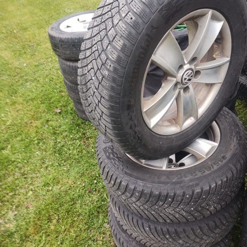 2 av dekkene er kjøpt nye høst 2024 og de 2 andre er av ukjent alder, virker noe harde men fortsatt bra mønster.