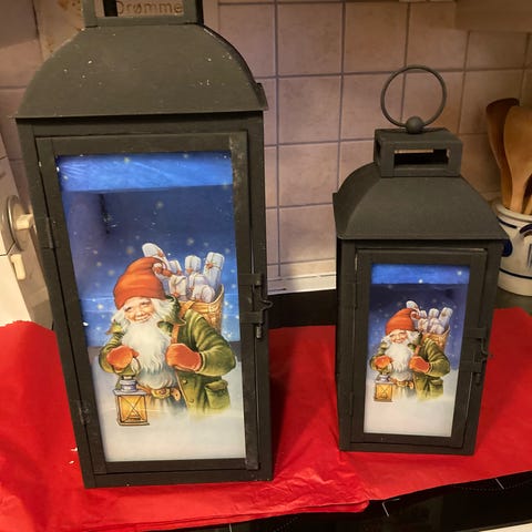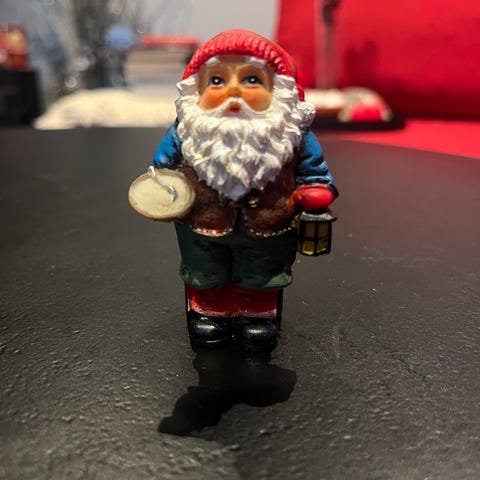 Er ca 1 meter høy! Laget av forskjellig materiale, ull etc! Ser snill og god ut!
