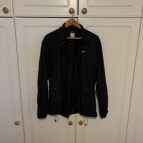 Nike Annet sport herrejakke i størrelse L. Jakken har hette og glidelås, og er i blåfarger. Egnet for ulike sport- og fritidsaktiviteter. Stoffet er fleece.