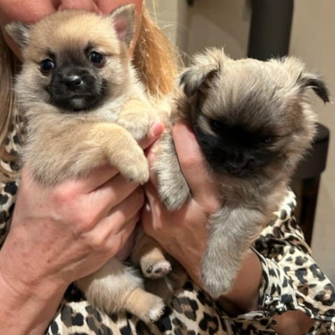 Mor er pomchi på ca 4,5 kg og far er pomchi på 3 kg. Begge foreldrene er friske, har et godt lynne, er lekne og kosete. Heily har hatt tre kull tidligere, og valpene har fått mye skryt hos veterinær og andre både for lynne og pelsen. Legger ved bilder av noen av de tidligere valpene Heily har fått, da de var nyfødt, og fram til ung/voksen alder, så du kan se litt hvordan utseendet og pels har utviklet seg. Valpene forandrer pelsen flere ganger de første to årene.