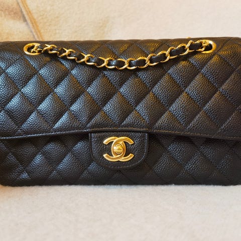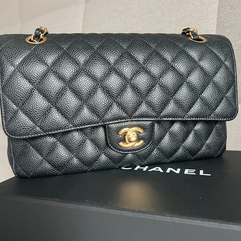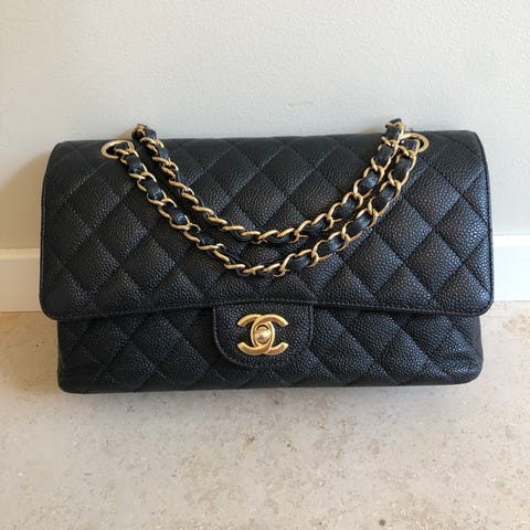 Selger et pent brukt Chanel CF kaviar med gold hardware str medium fra 2017.