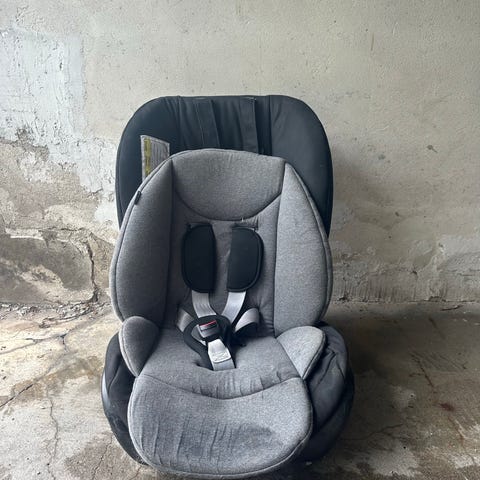Britax Römer Two-Way Fix barnesete med størrelse 25. Setet er designet for barn og har sikkerhetsfunksjoner tilpasset denne størrelsen.