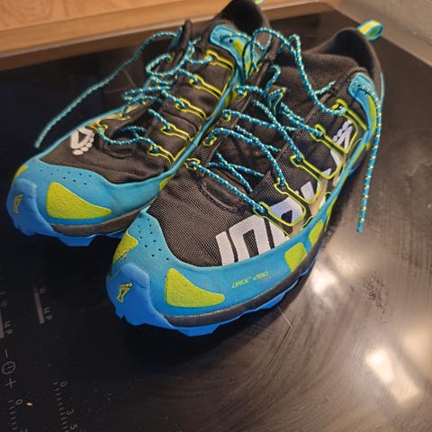La Sportiva Ultra Raptor 2 i herre størrelse 42. Skoene er designet for fotturer og har en impact brake system og x friction grep under. De har en kombinasjon av materialer som gir både komfort og beskyttelse under turer i variert terreng.