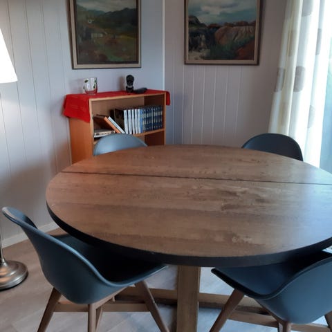 Veldig sosialt rundt bord i heltre. Diameter 140cm.