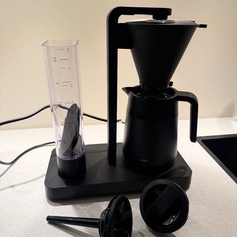 Maskinen har en vannbeholder og trakt som er designet for å lage kaffe med presisjon. Passer for hjemmebruk eller mindre kontorer.