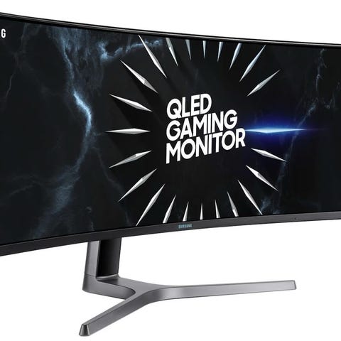 Samsung Qled 49-tommers buet skjerm selges. Skjermen har desverre fått seg en liten trøkk så er knust i hjørnet.