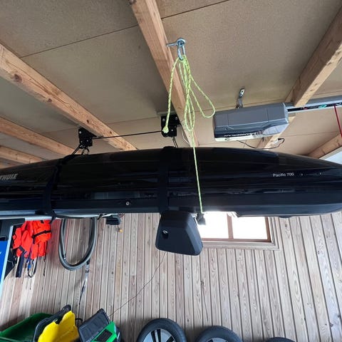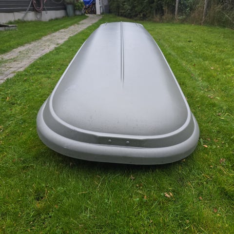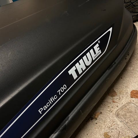 Thule Pacific 700 takboks i svart farge. Takboksen er designet for å monteres på takstativ og gir ekstra lagringsplass for reiseutstyr og bagasje.