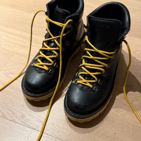 Diemme støvler i brun skinn, størrelse 40. Støvlene har solide lisser og metallhemper for god justering. Sålen er tykk og mønstret for bedre grep. Egnet for kalde vinterdager og gir støtte rundt ankelen.