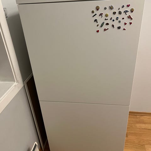 IKEA hvitt skap gis bort. 4 skapdører, 5 hyller + bunn. Mål: 80 cm (bredde) x 202 cm (høyde) x 27 cm (dybde). Må hentes.