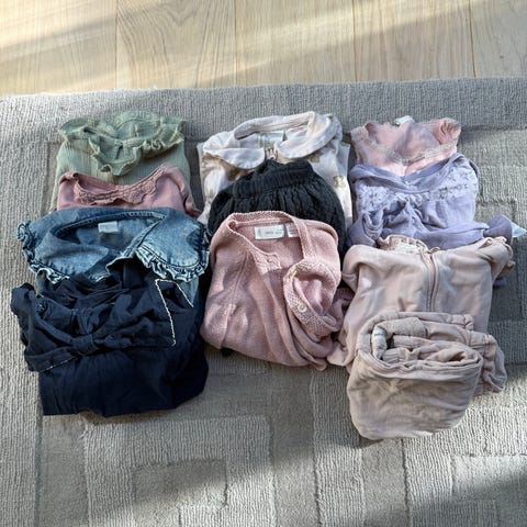 Pysjene er godt brukt mens flere av kjolene er såvidt brukte