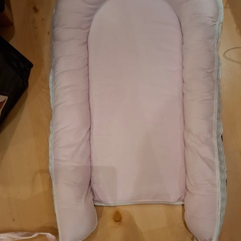 babynest i hvit farge med blonder og mykt materiale, designet for barn. Godt brukt. Men nyvasket og masse bruk igjen.